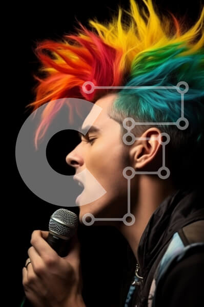 Intra Συλλεκτικό Ξύλινο Παζλ Plywood 4mm - Νεαρός άνδρας που τραγουδά στο μικρόφωνο με πολύχρωμα μαλλιά Σε Ξύλινο Κουτί - Διαστάσεις Puzzle: 10x10 cm – 25 κομμάτια