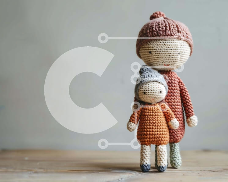 Intra Συλλεκτικό Ξύλινο Παζλ Plywood 4mm - Κροσέ κούκλες με παιδί Σε Ξύλινο Κουτί - Διαστάσεις Puzzle: 10x10 cm – 25 κομμάτια