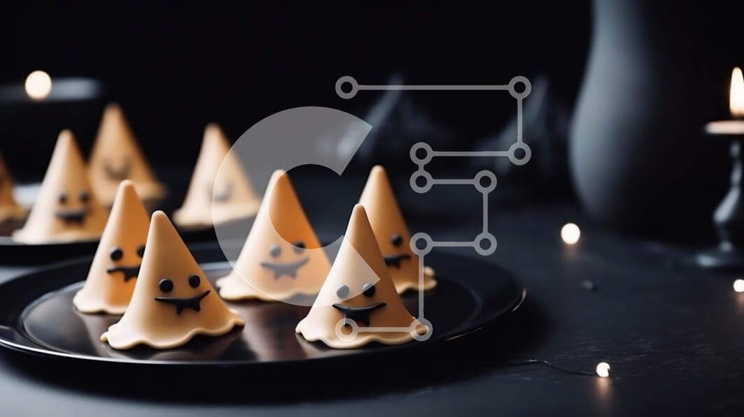 Intra Συλλεκτικό Ξύλινο Παζλ Plywood 4mm - Κώνοι για μπισκότα αποκριών σε σχήμα φαντάσματος σε ένα πιάτο Σε Ξύλινο Κουτί - Διαστάσεις Puzzle: 10x10 cm – 25 κομμάτια