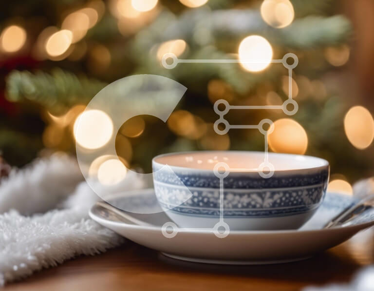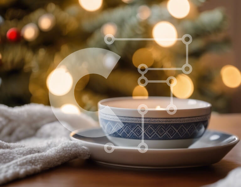 Intra Συλλεκτικό Ξύλινο Παζλ Plywood 4mm - Κύπελλο, πιατάκι και κερί στο τραπέζι με το χριστουγεννιάτικο δέντρο Σε Ξύλινο Κουτί - Διαστάσεις: 10x10 cm – 25 κομμάτια