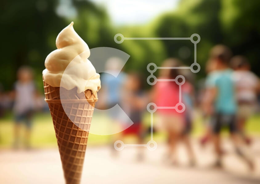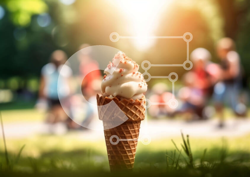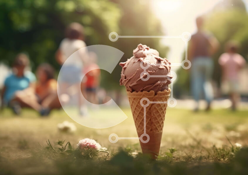 Intra Συλλεκτικό Ξύλινο Παζλ Plywood 4mm - Κώνος παγωτού στο γρασίδι με ανθρώπους σε εξωτερικούς χώρους Σε Ξύλινο Κουτί - Διαστάσεις: 10x10 cm – 25 κομμάτια