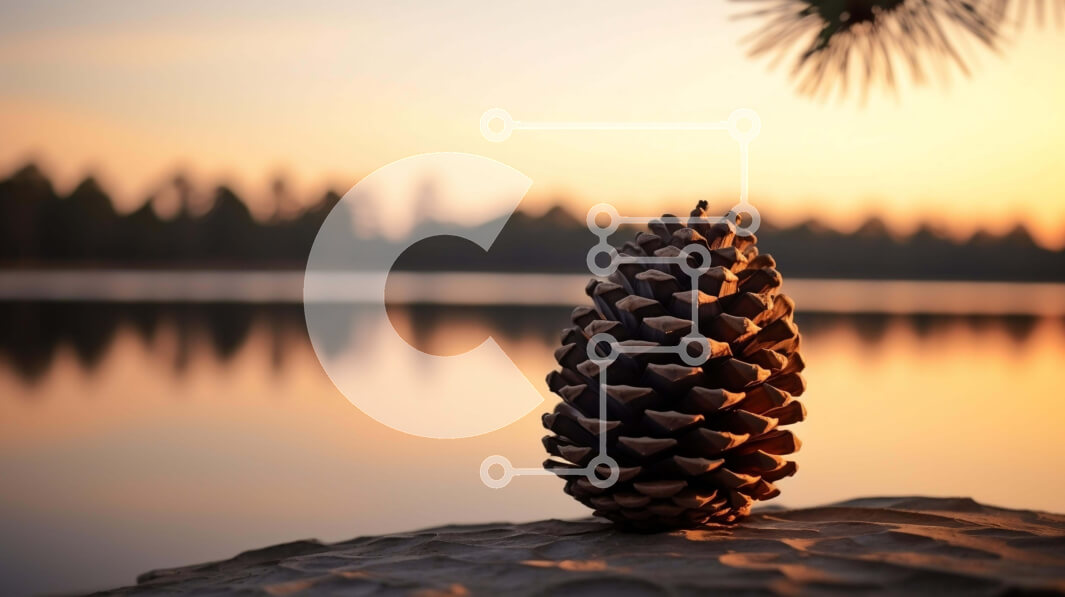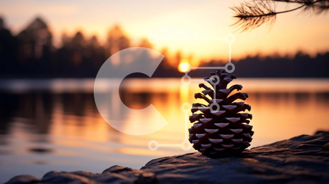 Intra Συλλεκτικό Ξύλινο Παζλ Plywood 4mm - Κώνος πεύκου στο κούτσουρο στο ηλιοβασίλεμα δίπλα στη λίμνη Σε Ξύλινο Κουτί - Διαστάσεις: 10x10 cm – 25 κομμάτια