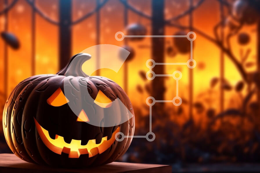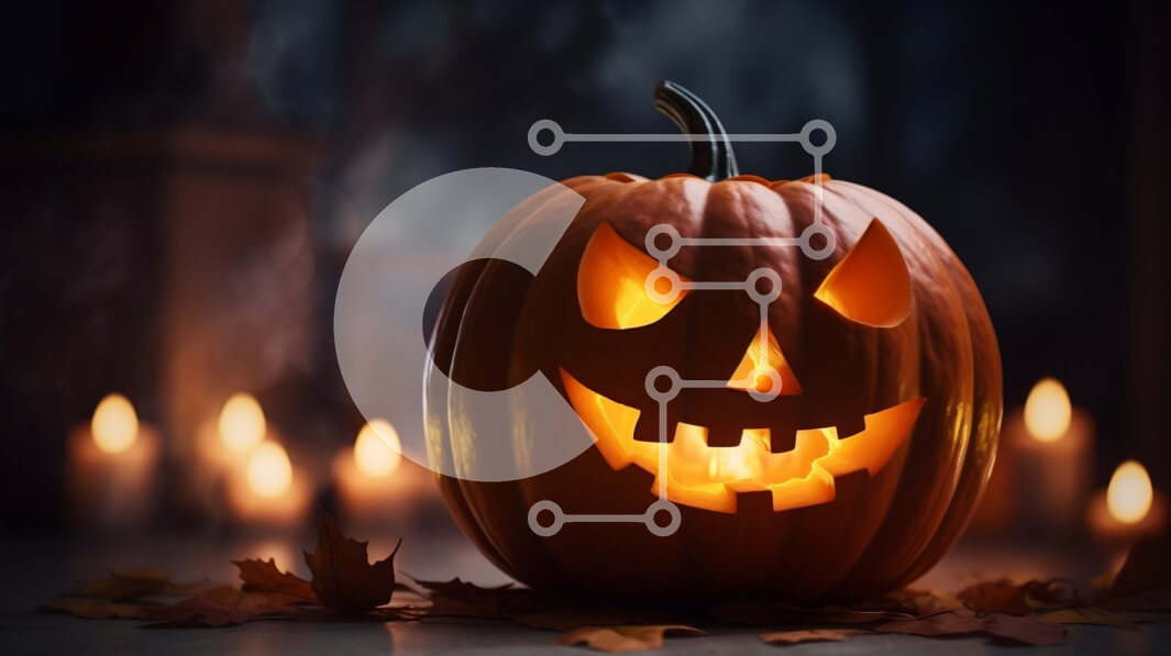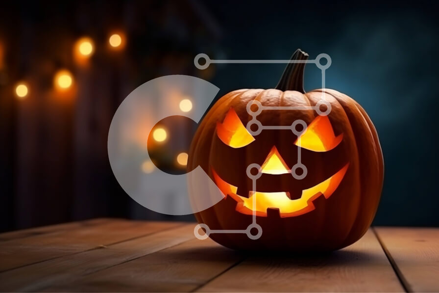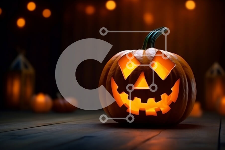 Intra Συλλεκτικό Ξύλινο Παζλ Plywood 4mm - Λαμπερή κολοκύθα Jack-o'-Lantern σε ένα τρομακτικό τραπέζι Σε Ξύλινο Κουτί - Διαστάσεις: 10x10 cm – 25 κομμάτια