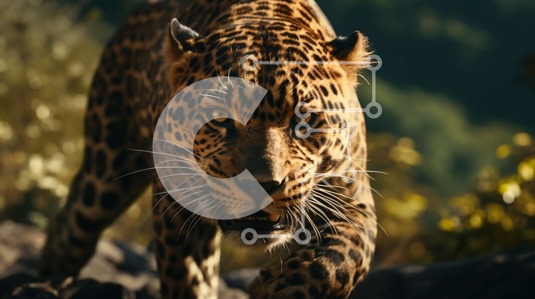 Intra Συλλεκτικό Ξύλινο Παζλ Plywood 4mm - Λεοπάρδαλη που περπατά σε βραχώδες έδαφος με δέντρα και βουνά Σε Ξύλινο Κουτί - Διαστάσεις: 10x10 cm – 25 κομμάτια