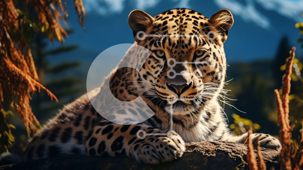 Intra Συλλεκτικό Ξύλινο Παζλ Plywood 4mm - Λεοπάρδαλη σε βραχώδη έξαρση στην ορεινή περιοχή Σε Ξύλινο Κουτί - Διαστάσεις: 10x10 cm – 25 κομμάτια
