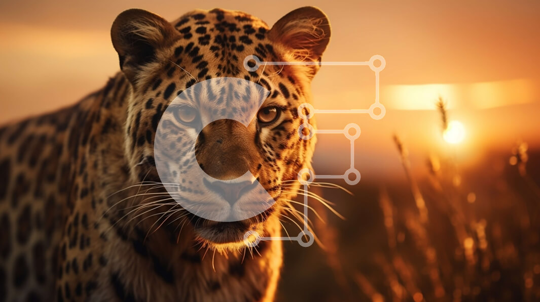 Intra Συλλεκτικό Ξύλινο Παζλ Plywood 4mm - Λεοπάρδαλη σε ένα χορταριασμένο χωράφι με φόντο ηλιοβασίλεμα Σε Ξύλινο Κουτί - Διαστάσεις: 10x10 cm – 25 κομμάτια