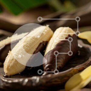 Intra Συλλεκτικό Ξύλινο Παζλ Plywood 4mm - Μπανάνες με επικάλυψη σοκολάτας σε ξύλινο πιάτο με τροπικά λουλούδια Σε Ξύλινο Κουτί - Διαστάσεις: 10x10 cm – 25 κομμάτια