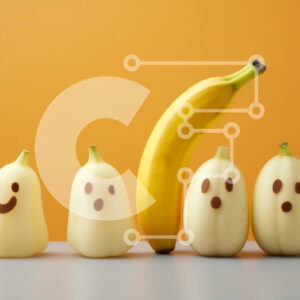 Intra Συλλεκτικό Ξύλινο Παζλ Plywood 4mm - Μπανάνες με πρόσωπα σε πορτοκαλί φόντο Σε Ξύλινο Κουτί - Διαστάσεις: 10x10 cm – 25 κομμάτια