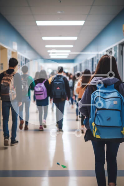 Intra Συλλεκτικό Ξύλινο Παζλ Plywood 4mm - Μαθητές που περπατούν στο διάδρομο του σχολείου με σακίδια Σε Ξύλινο Κουτί - Διαστάσεις Puzzle: 10x10 cm – 25 κομμάτια