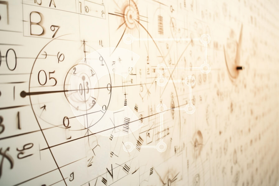Intra Συλλεκτικό Ξύλινο Παζλ Plywood 4mm - Μαθηματικοί τύποι και ρολόγια σε λευκό πίνακα Σε Ξύλινο Κουτί - Διαστάσεις Puzzle: 10x10 cm – 25 κομμάτια