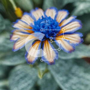 Intra Συλλεκτικό Ξύλινο Παζλ Plywood 4mm - Μπλε και πορτοκαλί διακοσμητικό λουλούδι με πράσινα φύλλα Σε Ξύλινο Κουτί - Διαστάσεις: 10x10 cm – 25 κομμάτια