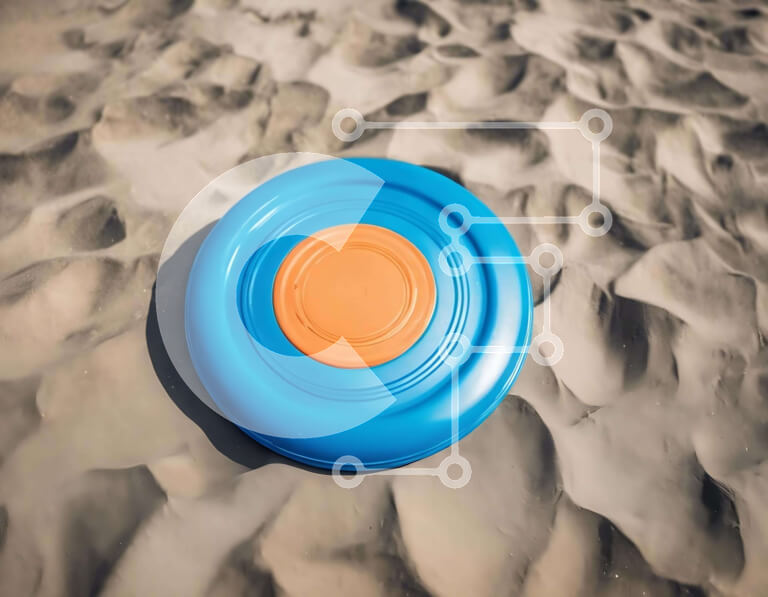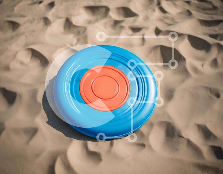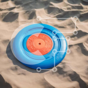 Intra Συλλεκτικό Ξύλινο Παζλ Plywood 4mm - Μπλε και πορτοκαλί φρίσμπι στην άμμο Σε Ξύλινο Κουτί - Διαστάσεις Puzzle: 10x10 cm – 25 κομμάτια