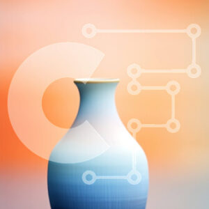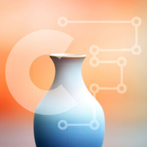 Intra Συλλεκτικό Ξύλινο Παζλ Plywood 4mm - Μπλε και πορτοκαλί βάζο στο τραπέζι με πορτοκαλί και μπλε φόντο Σε Ξύλινο Κουτί - Διαστάσεις: 10x10 cm – 25 κομμάτια