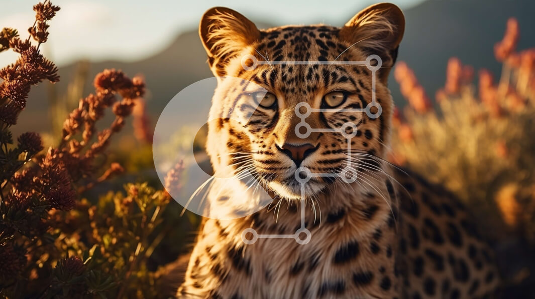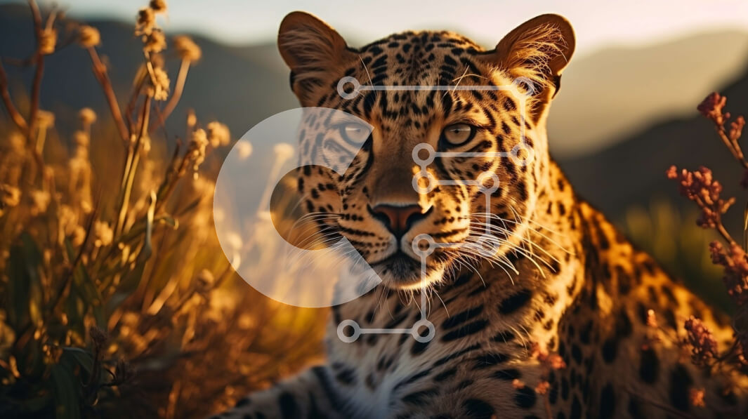 Intra Συλλεκτικό Ξύλινο Παζλ Plywood 4mm - Λεοπάρδαλη σε ένα χωράφι με λουλούδια και θάμνους Σε Ξύλινο Κουτί - Διαστάσεις: 10x10 cm – 25 κομμάτια