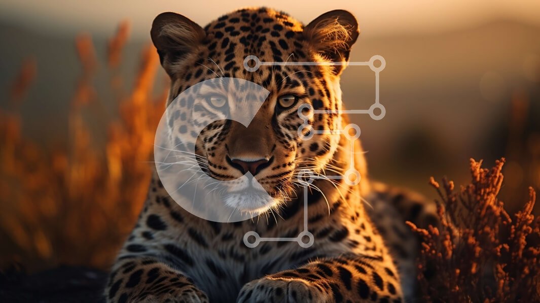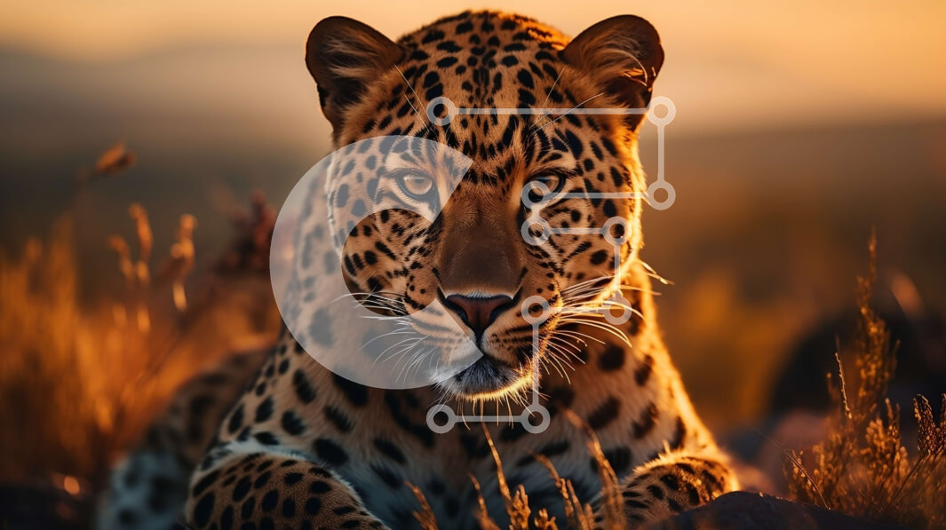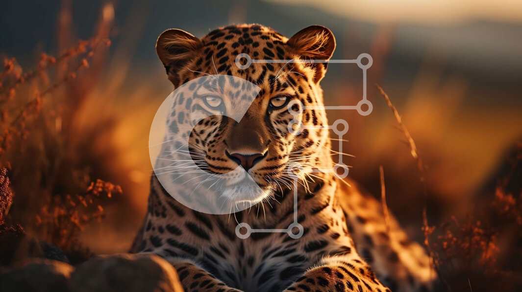 Intra Συλλεκτικό Ξύλινο Παζλ Plywood 4mm - Λεοπάρδαλη στο γρασίδι στο ηλιοβασίλεμα Σε Ξύλινο Κουτί - Διαστάσεις: 10x10 cm – 25 κομμάτια