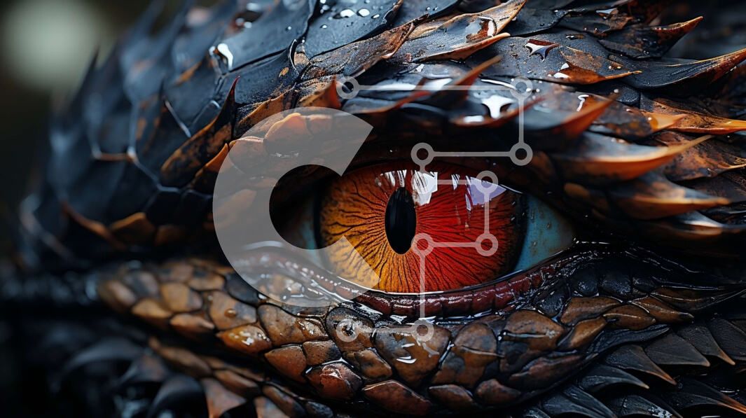 Intra Συλλεκτικό Ξύλινο Παζλ Plywood 4mm - Λεπτομερής κοντινό πλάνο του Dragon's Eye με κόκκινη ίριδα και μαύρο σκληρό χιτώνα Σε Ξύλινο Κουτί - Διαστάσεις: 10x10 cm – 25 κομμάτια