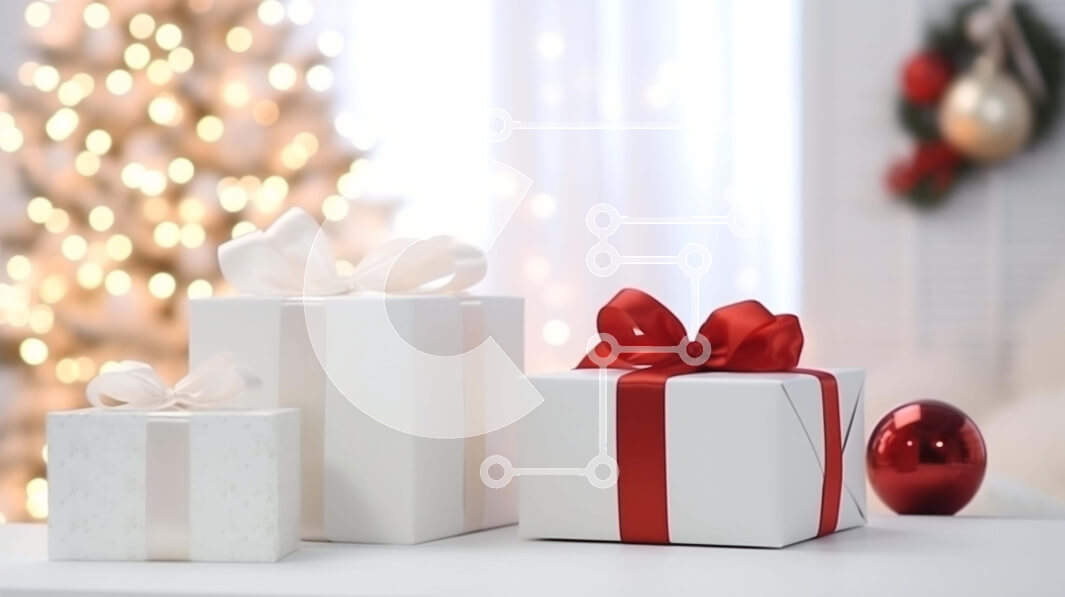 Intra Συλλεκτικό Ξύλινο Παζλ Plywood 4mm - Λευκά κουτιά δώρων με κόκκινες κορδέλες σε ένα τραπέζι Σε Ξύλινο Κουτί - Διαστάσεις: 10x10 cm – 25 κομμάτια