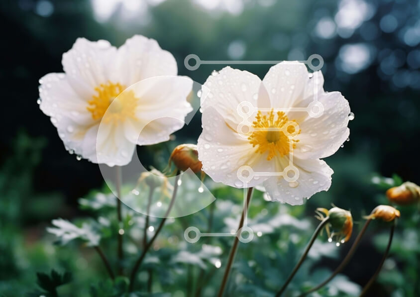 Intra Συλλεκτικό Ξύλινο Παζλ Plywood 4mm - Λευκά λουλούδια με σταγονίδια νερού σε καταπράσινο περιβάλλον Σε Ξύλινο Κουτί - Διαστάσεις: 10x10 cm – 25 κομμάτια