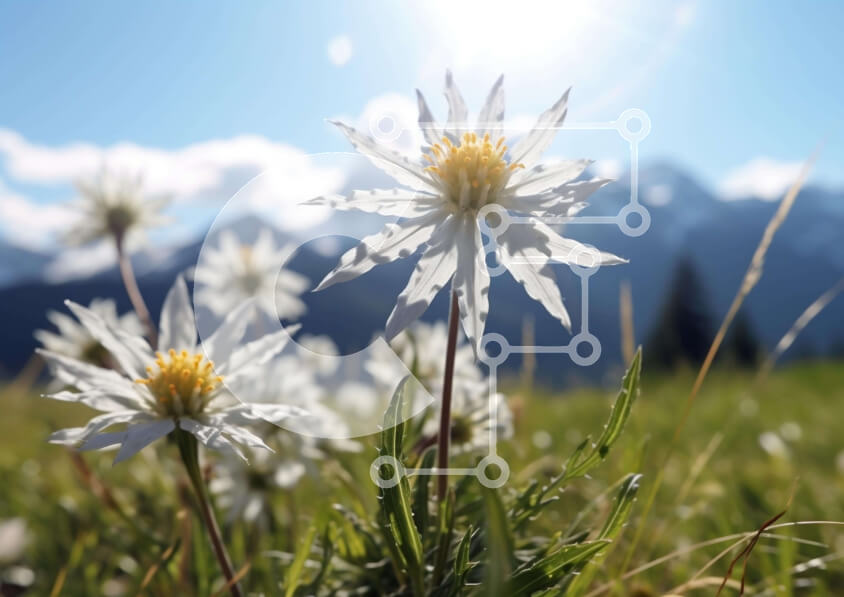 Intra Συλλεκτικό Ξύλινο Παζλ Plywood 4mm - Λευκά λουλούδια σε ένα λιβάδι με βουνά Σε Ξύλινο Κουτί - Διαστάσεις: 10x10 cm – 25 κομμάτια