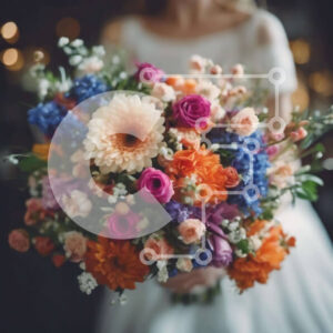 Intra Συλλεκτικό Ξύλινο Παζλ Plywood 4mm - Νύφη που κρατά πολύχρωμη ανθοδέσμη την ημέρα του γάμου Σε Ξύλινο Κουτί - Διαστάσεις Puzzle: 10x10 cm – 25 κομμάτια