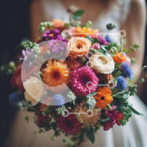 Intra Συλλεκτικό Ξύλινο Παζλ Plywood 4mm - Νύφη που κρατά πολύχρωμη ανθοδέσμη στο νυφικό Σε Ξύλινο Κουτί - Διαστάσεις Puzzle: 10x10 cm – 25 κομμάτια
