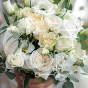 Intra Συλλεκτικό Ξύλινο Παζλ Plywood 4mm - Νύφη που κρατά ένα μπουκέτο από λευκά τριαντάφυλλα και πρασινάδα Σε Ξύλινο Κουτί - Διαστάσεις Puzzle: 10x10 cm – 25 κομμάτια