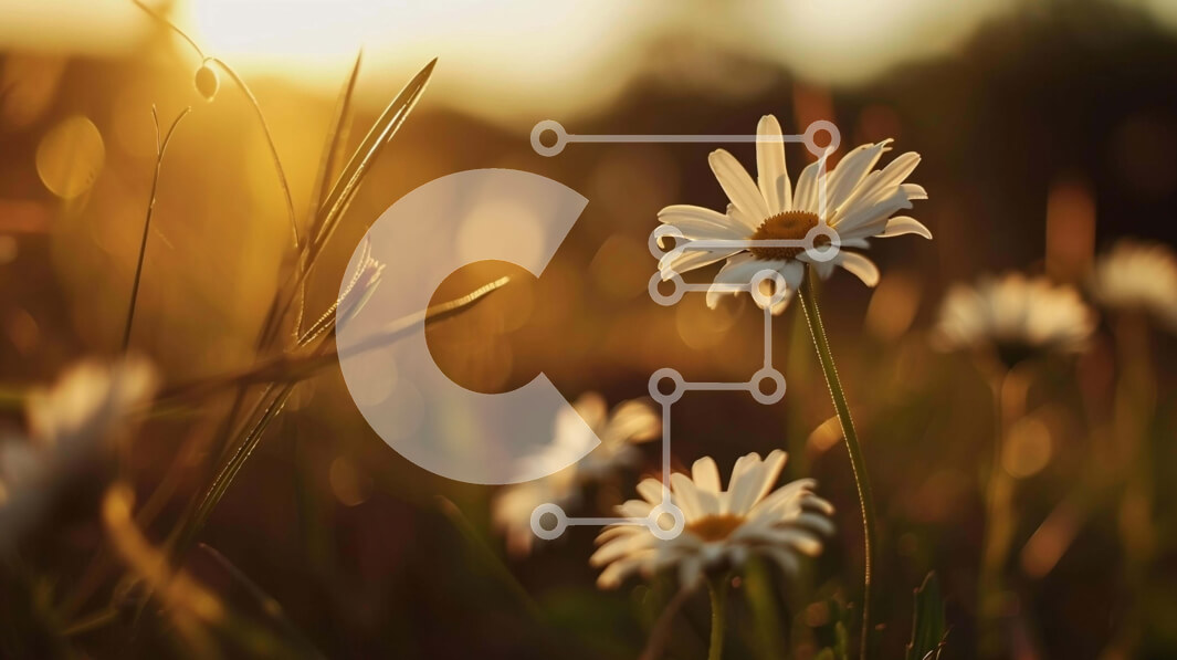 Intra Συλλεκτικό Ξύλινο Παζλ Plywood 4mm - Λευκές μαργαρίτες στο χορταριασμένο χωράφι με το ηλιοβασίλεμα Σε Ξύλινο Κουτί - Διαστάσεις: 10x10 cm – 25 κομμάτια