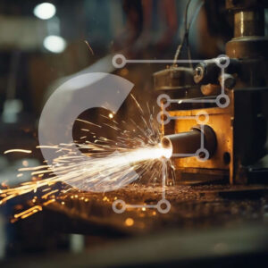 Intra Συλλεκτικό Ξύλινο Παζλ Plywood 4mm - Μηχανή κοπής μετάλλων με σπινθήρες σε βιομηχανικό περιβάλλον Σε Ξύλινο Κουτί - Διαστάσεις Puzzle: 10x10 cm – 25 κομμάτια