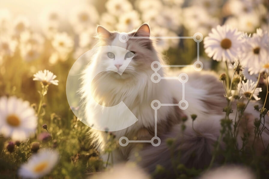 Intra Συλλεκτικό Ξύλινο Παζλ Plywood 4mm - Λευκή και αφράτη γάτα στο χωράφι των μαργαριτών Σε Ξύλινο Κουτί - Διαστάσεις: 10x10 cm – 25 κομμάτια