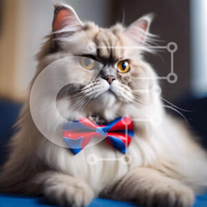 Intra Συλλεκτικό Ξύλινο Παζλ Plywood 4mm - Λευκή και καφέ περσική γάτα με πολύχρωμο παπιγιόν σε μπλε καναπέ Σε Ξύλινο Κουτί - Διαστάσεις: 10x10 cm – 25 κομμάτια
