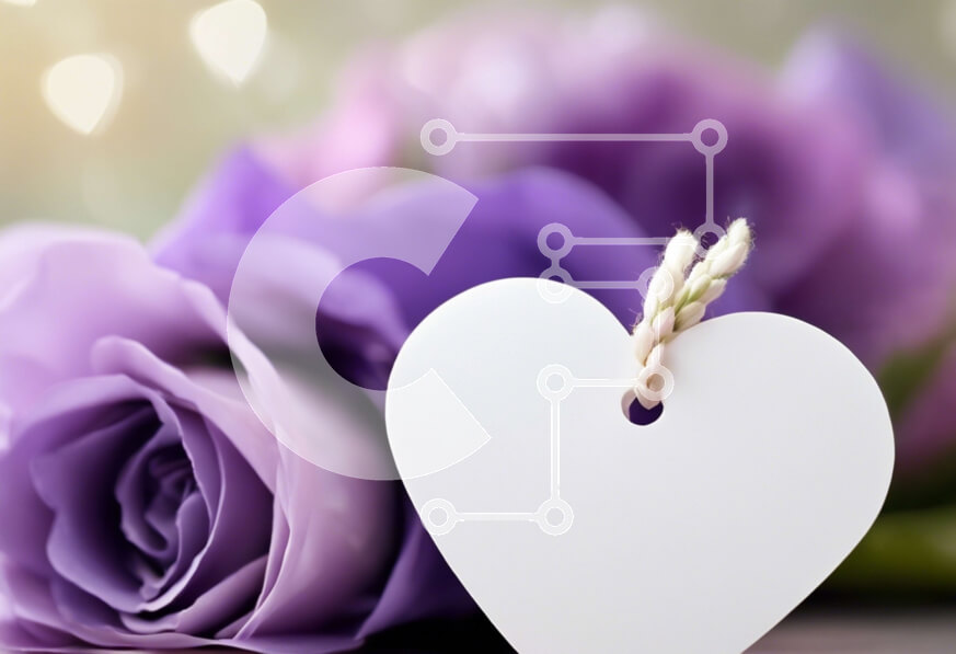 Intra Συλλεκτικό Ξύλινο Παζλ Plywood 4mm - Λευκή ετικέτα σε σχήμα καρδιάς και μωβ τριαντάφυλλα Σε Ξύλινο Κουτί - Διαστάσεις: 10x10 cm – 25 κομμάτια
