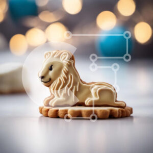 Intra Συλλεκτικό Ξύλινο Παζλ Plywood 4mm - Μικρό μπισκότο σε σχήμα λιονταριού σε εορταστικό φόντο Σε Ξύλινο Κουτί - Διαστάσεις: 10x10 cm – 25 κομμάτια