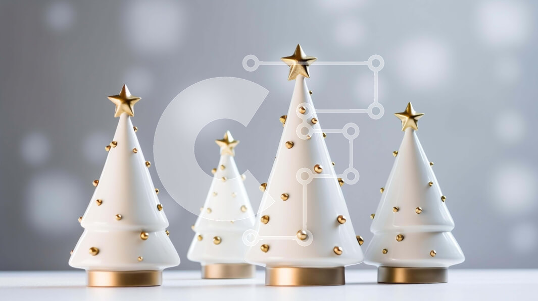 Intra Συλλεκτικό Ξύλινο Παζλ Plywood 4mm - Λευκά και χρυσά κεραμικά χριστουγεννιάτικα δέντρα σε ένα εορταστικό τραπέζι Σε Ξύλινο Κουτί - Διαστάσεις: 10x10 cm – 25 κομμάτια
