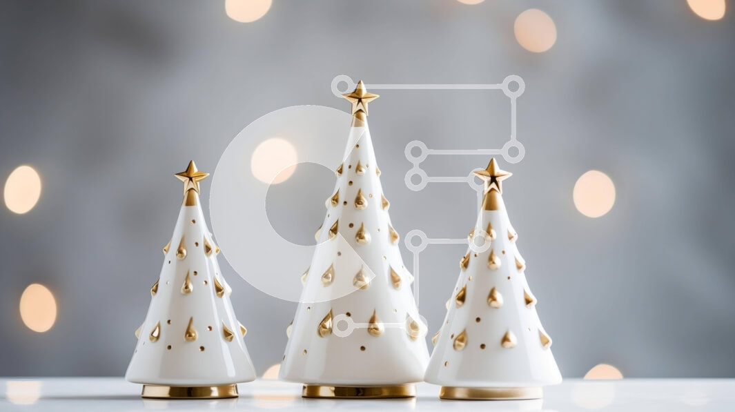 Intra Συλλεκτικό Ξύλινο Παζλ Plywood 4mm - Λευκά και χρυσά κεραμικά χριστουγεννιάτικα δέντρα με φωτισμένο φόντο Σε Ξύλινο Κουτί - Διαστάσεις: 10x10 cm – 25 κομμάτια