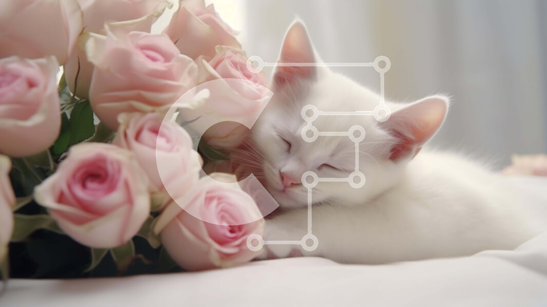 Intra Συλλεκτικό Ξύλινο Παζλ Plywood 4mm - Λευκή γάτα που κοιμάται σε ροζ τριαντάφυλλα Σε Ξύλινο Κουτί - Διαστάσεις: 10x10 cm – 25 κομμάτια