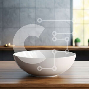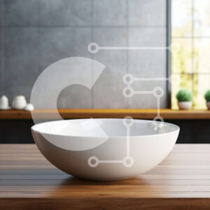 Intra Συλλεκτικό Ξύλινο Παζλ Plywood 4mm - Λευκός πορσελάνινος νεροχύτης σε ξύλινο τραπέζι με θέα στον ορίζοντα της πόλης Σε Ξύλινο Κουτί - Διαστάσεις Puzzle: 10x10 cm – 25 κομμάτια