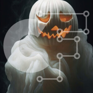 Intra Συλλεκτικό Ξύλινο Παζλ Plywood 4mm - Λευκή κολοκύθα με φαντάσματα που κάθονται στην κορυφή Σε Ξύλινο Κουτί - Διαστάσεις: 10x10 cm – 25 κομμάτια
