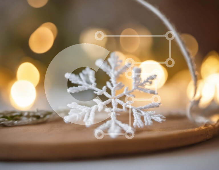 Intra Συλλεκτικό Ξύλινο Παζλ Plywood 4mm - Λευκή νιφάδα χιονιού σε διακοσμητικό ξύλινο πιάτο με πολύχρωμα φώτα Σε Ξύλινο Κουτί - Διαστάσεις: 10x10 cm – 25 κομμάτια