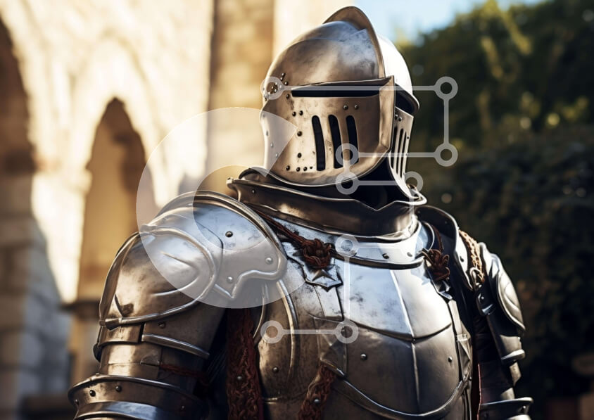 Intra Συλλεκτικό Ξύλινο Παζλ Plywood 4mm - Μεσαιωνικός ιππότης με πανοπλία που στέκεται μπροστά από το παλιό κτίριο ή το κάστρο Σε Ξύλινο Κουτί - Διαστάσεις Puzzle: 10x10 cm – 25 κομμάτια