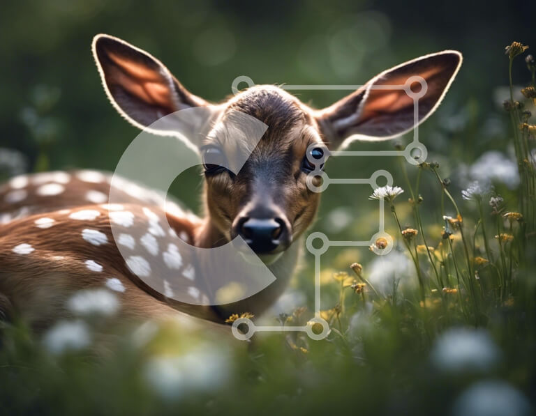 Intra Συλλεκτικό Ξύλινο Παζλ Plywood 4mm - Μικρά ελάφια που αναπαύονται στο γρασίδι με τις μαργαρίτες Σε Ξύλινο Κουτί - Διαστάσεις: 10x10 cm – 25 κομμάτια