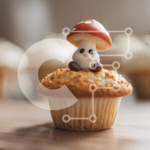 Intra Συλλεκτικό Ξύλινο Παζλ Plywood 4mm - Μικρό cupcake σε σχήμα μανιταριού σε ένα ξύλινο τραπέζι Σε Ξύλινο Κουτί - Διαστάσεις: 10x10 cm – 25 κομμάτια