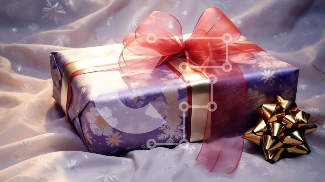 Intra Συλλεκτικό Ξύλινο Παζλ Plywood 4mm - Μωβ και χρυσό τυλιγμένο δώρο με χρυσούς φιόγκους Σε Ξύλινο Κουτί - Διαστάσεις: 10x10 cm – 25 κομμάτια