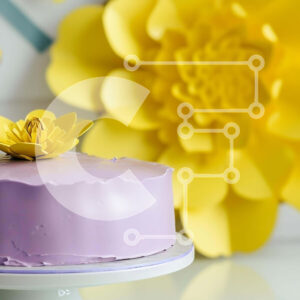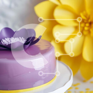 Intra Συλλεκτικό Ξύλινο Παζλ Plywood 4mm - Μωβ κέικ με κίτρινα λουλούδια Σε Ξύλινο Κουτί - Διαστάσεις: 10x10 cm – 25 κομμάτια