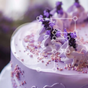 Intra Συλλεκτικό Ξύλινο Παζλ Plywood 4mm - Μωβ κέικ με λουλούδια λεβάντας και ψεκασμούς Σε Ξύλινο Κουτί - Διαστάσεις: 10x10 cm – 25 κομμάτια