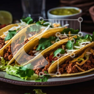 Intra Συλλεκτικό Ξύλινο Παζλ Plywood 4mm - Λαχταριστή εικόνα τριών tacos με κρέας, μαρούλι και τυρί Σε Ξύλινο Κουτί - Διαστάσεις: 10x10 cm – 25 κομμάτια
