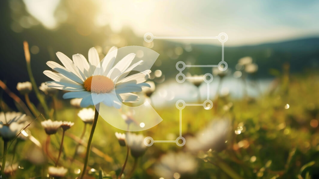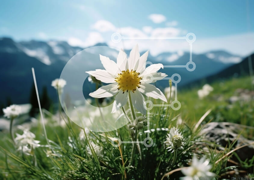 Intra Συλλεκτικό Ξύλινο Παζλ Plywood 4mm - Λευκό λουλούδι μαργαρίτας σε ανοιχτό χωράφι με βουνά Σε Ξύλινο Κουτί - Διαστάσεις: 10x10 cm – 25 κομμάτια