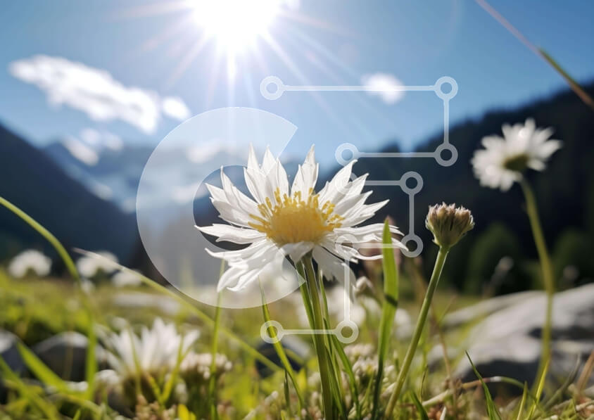Intra Συλλεκτικό Ξύλινο Παζλ Plywood 4mm - Λευκό λουλούδι μαργαρίτας στο λιβάδι με τα βουνά Σε Ξύλινο Κουτί - Διαστάσεις: 10x10 cm – 25 κομμάτια