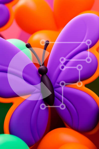 Intra Συλλεκτικό Ξύλινο Παζλ Plywood 4mm - Μωβ πεταλούδα στα πολύχρωμα μπαλόνια Σε Ξύλινο Κουτί - Διαστάσεις: 10x10 cm – 25 κομμάτια