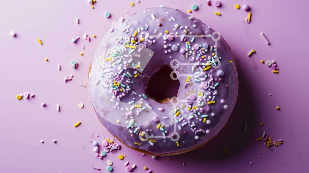 Intra Συλλεκτικό Ξύλινο Παζλ Plywood 4mm - Μωβ πασπαλισμένο ντόνατ σε ροζ φόντο Σε Ξύλινο Κουτί - Διαστάσεις: 10x10 cm – 25 κομμάτια