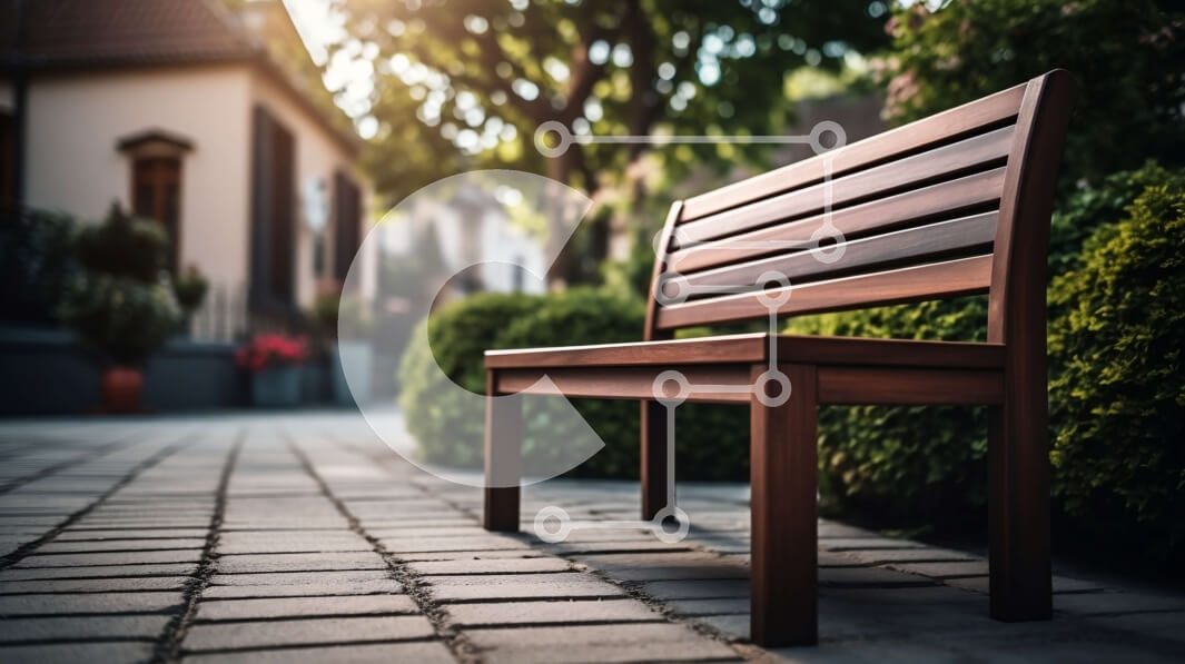 Intra Συλλεκτικό Ξύλινο Παζλ Plywood 4mm - Ξύλινος πάγκος στο πεζοδρόμιο με πράσινα φυτά και τσιμεντένιο φόντο Σε Ξύλινο Κουτί - Διαστάσεις Puzzle: 10x10 cm – 25 κομμάτια